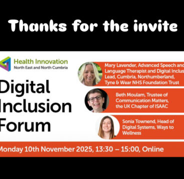 Join Mary Lavender and Beth Moulam at the Digital Inclusion Forum to hear about the difference AAC makes in the lives of non speaking individuals